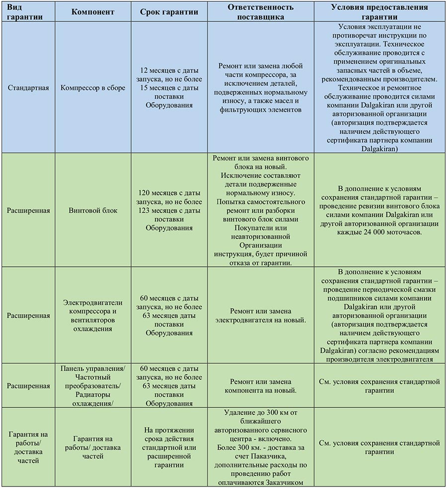 1. Компрессорное оборудование должно быть приобретено у авторизованного дилера или дистрибьютора компании Dalgakiran в России или непосредственно у АО «Далгакыран-М».